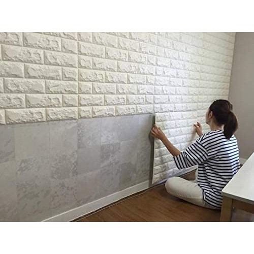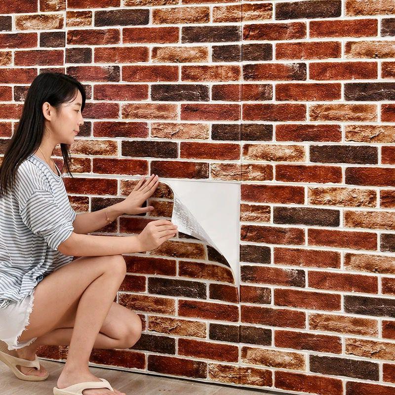 Kit 30 Placas 3D Papel de Parede Tijolinho Auto Colante Lavável Alto Relevo Moderno