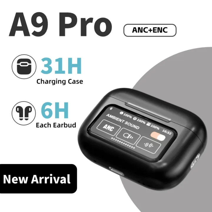 2024 Novo A9 Pro Touch Screen ANC Fones De Ouvido Sem Fio TWS Ruído Cancelando O Earbud Bluetoth 5.3 Longa Duração Da Bateria Qualidade De Tom HiFi