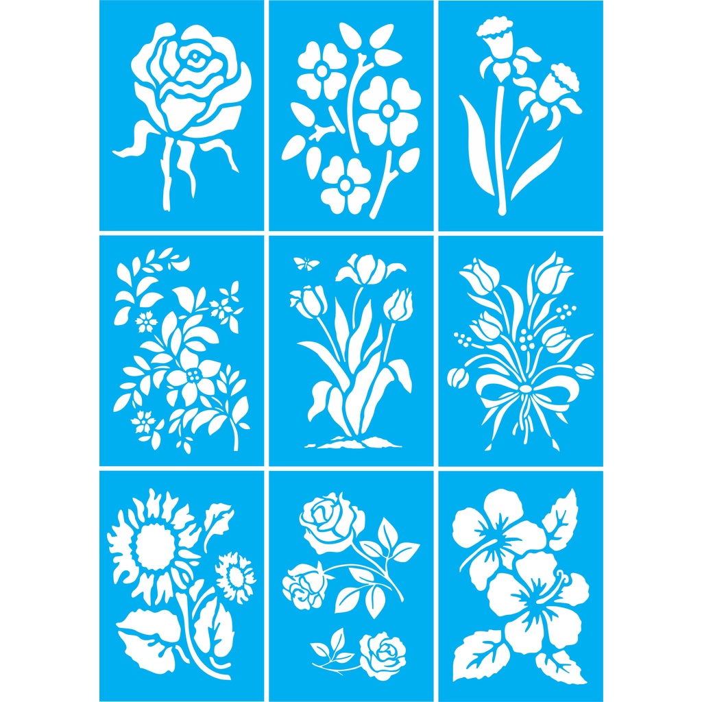Kit 9 Stencil Flores e Rosas Molde para Pintura 10x14cm ,