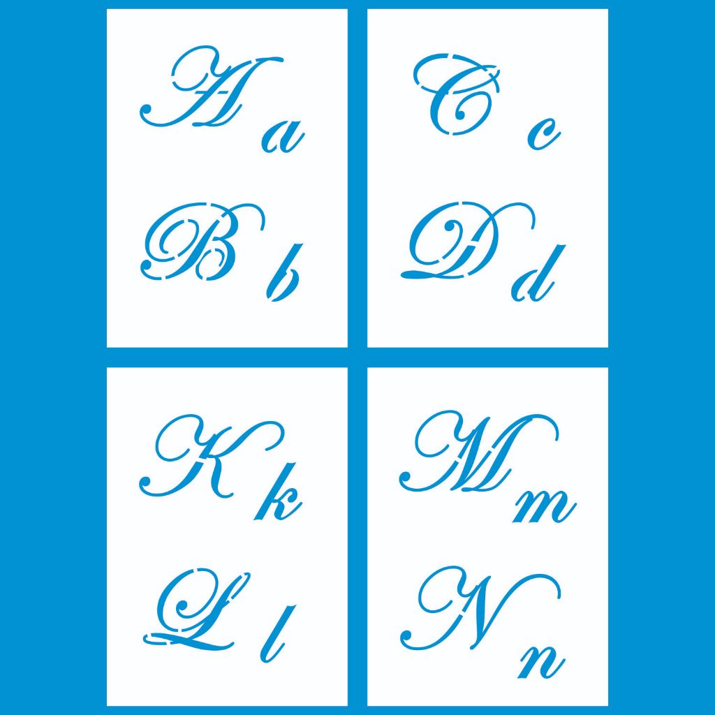 Stencil Molde Vazado Alfabeto Cursivo Tamanho Externo 7cm X 5cm Mini Pintura Tecido Mdf Madeira
