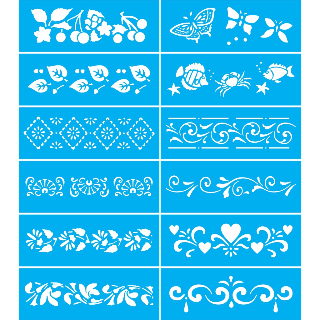 Stencil Kit (3) 12 Peças 19x7cm Molde Pintura Pronta Entrega