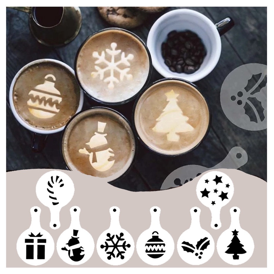 Kit 8 Moldes Stencil Natal Decorar Café Biscoito