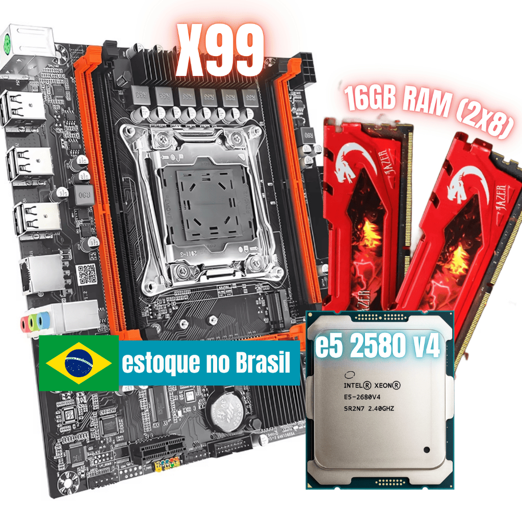 Kit Upgrade X99 Intel Xeon E5 2580 V4 + 16GB RAM DDR4 (2x8GB) + Placa Mãe Mougol X99 DDR4 Envio Imediato