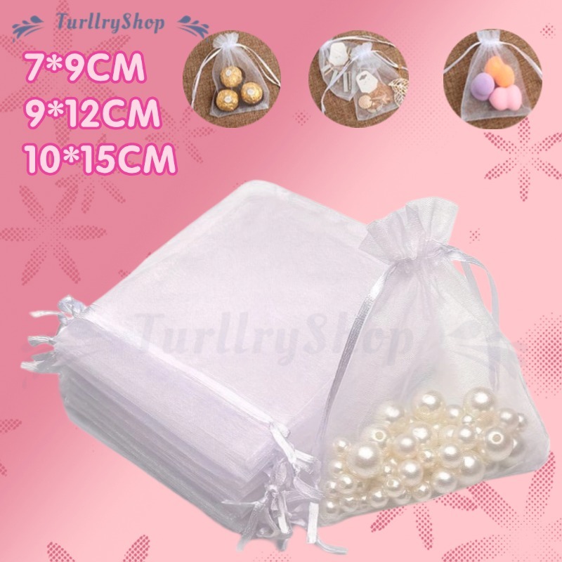 Kit 50/100 Un Saco Saquinho Organza Tule Saquinho 7x9 9x12 10x15 Branco Festa Casamento Saco Para Lembrancinhas Decoração Presente Aniversário Chá de bebê