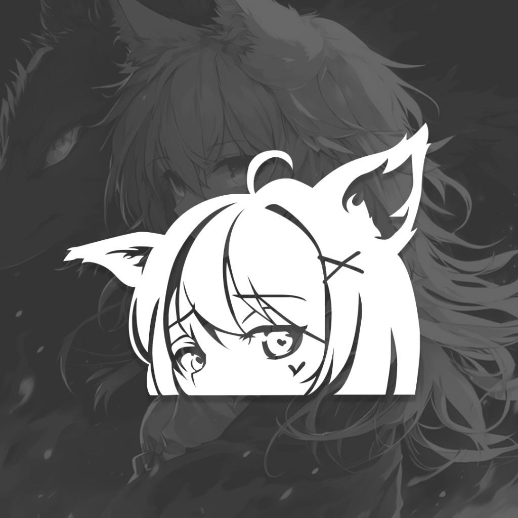 Adesivo Cute Wolf Girl Waifu Peeker PC Carro Anime