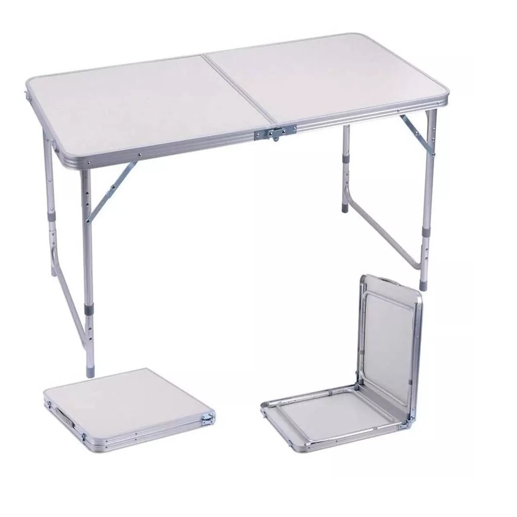 Mesa Dobravel Portatil Maleta Retangular Com Ajuste Altura Alumínio Cor Branco Camping Praia Piquenique 90*60*70cm WCT FITNESS