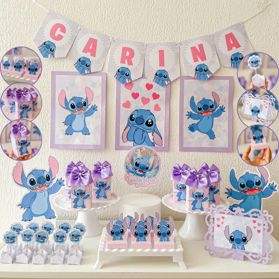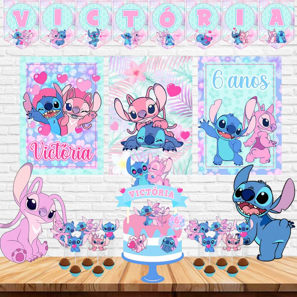 Kit Festa Stitch e Angel | Personalizado com nome e idade | Só um bolinho | Decoração | Festa em Casa