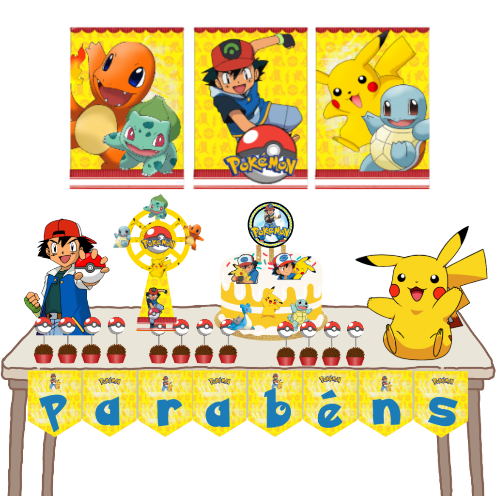 Kit festa em casa só um bolinho tema Pokemon decoração aniversário