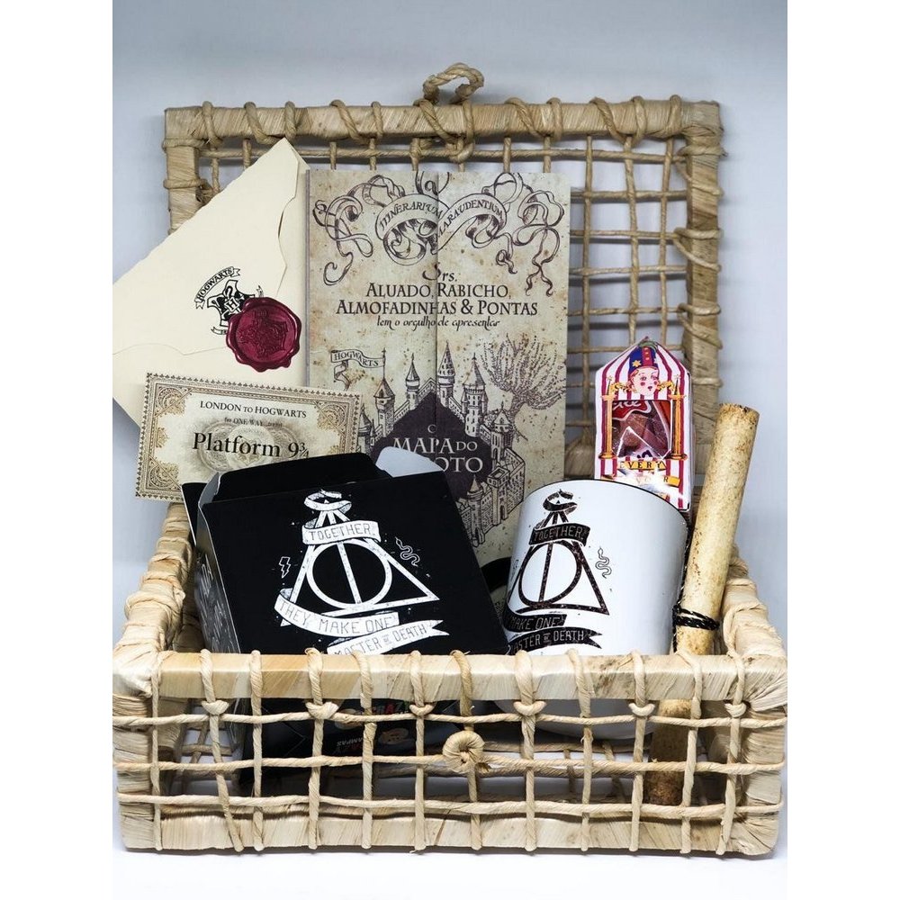 Kit Delícia Harry Potter ( 8 itens) - com Carta personalizada, mapa do maroto e mais. Cesta Harry Potter