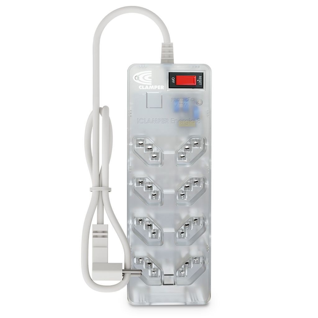 Filtro de linha com protetor contra surtos (DPS) - 127/220 volts - 10 amperes - 8 tomadas - 3 pinos - iCLAMPER Energia 8 - LCF - Kit 5 Unidades