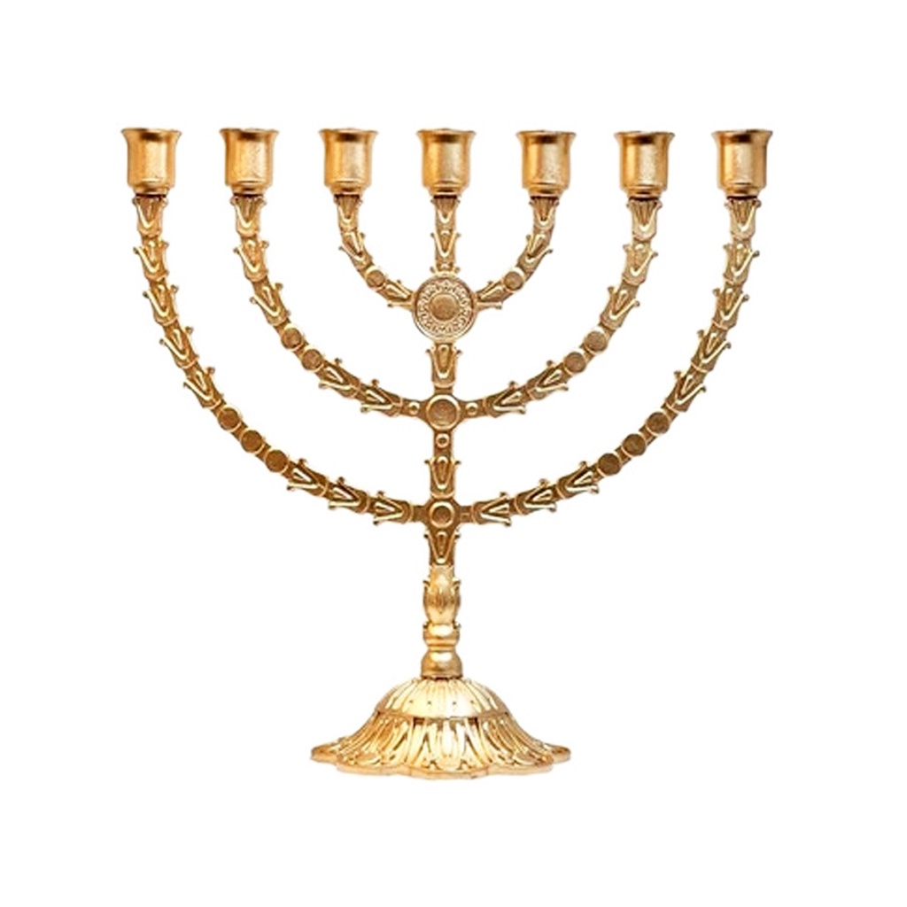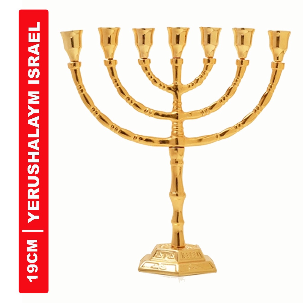 candelabro menorá castiçal Yerushalaim em metal dourado grande 19cm