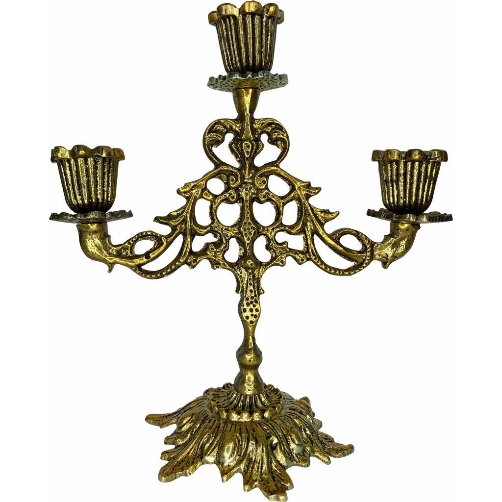 Castiçal Candelabro Suporte P/ Velas Dourado/envelhe 3 Velas
