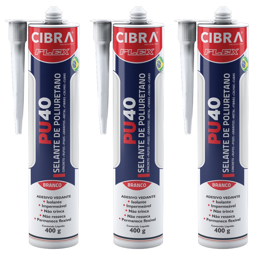 Kit 3 Selantes PU 40 Selante de Poliuretano Cibra Flex Adesivo Vedante