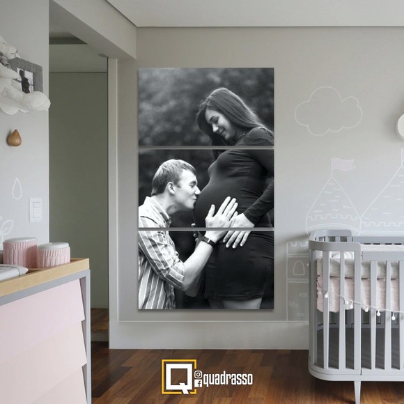 Quadro Decorativo - PERSONALIZADO COM SUA FOTO - mosaico em 3 peças na vertical