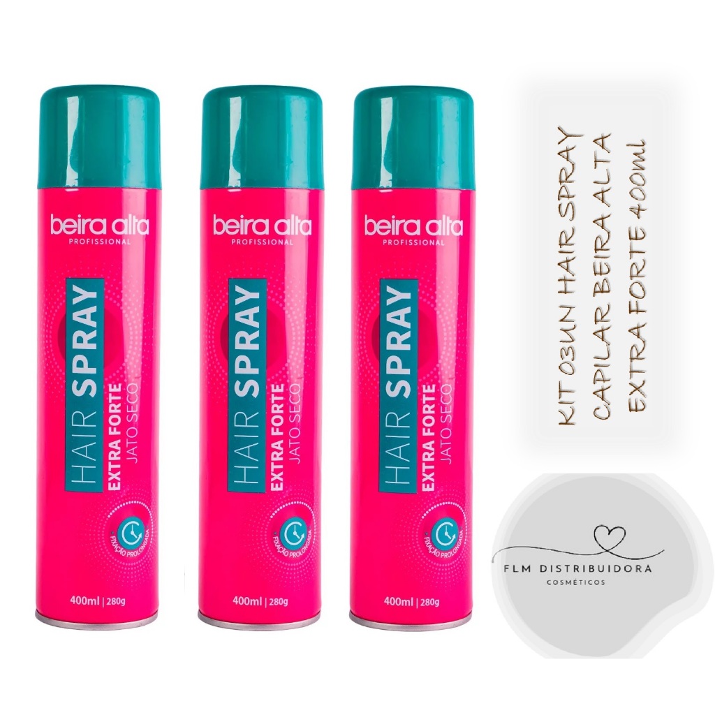 Kit 03un Hair Spray Fixador Extra Forte Jato Seco 400ml Beira Alta