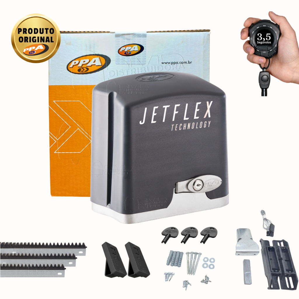 Kit Motor de Portão Eletrônico Dezlizante DZ Rio Jetflex PPA 1/3 hp com Cremalheira