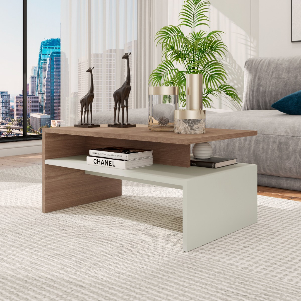 Mesa Retangular de Centro para Decoração sala - Off White com Nature