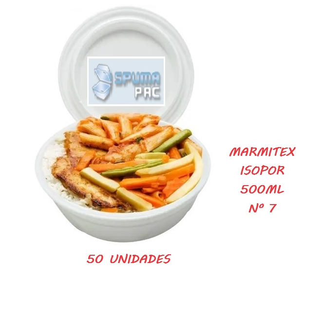 Marmitex Isopor 500ml Nº7 'Quentinha' com Tampa Spumapac Pacote 50 unidades