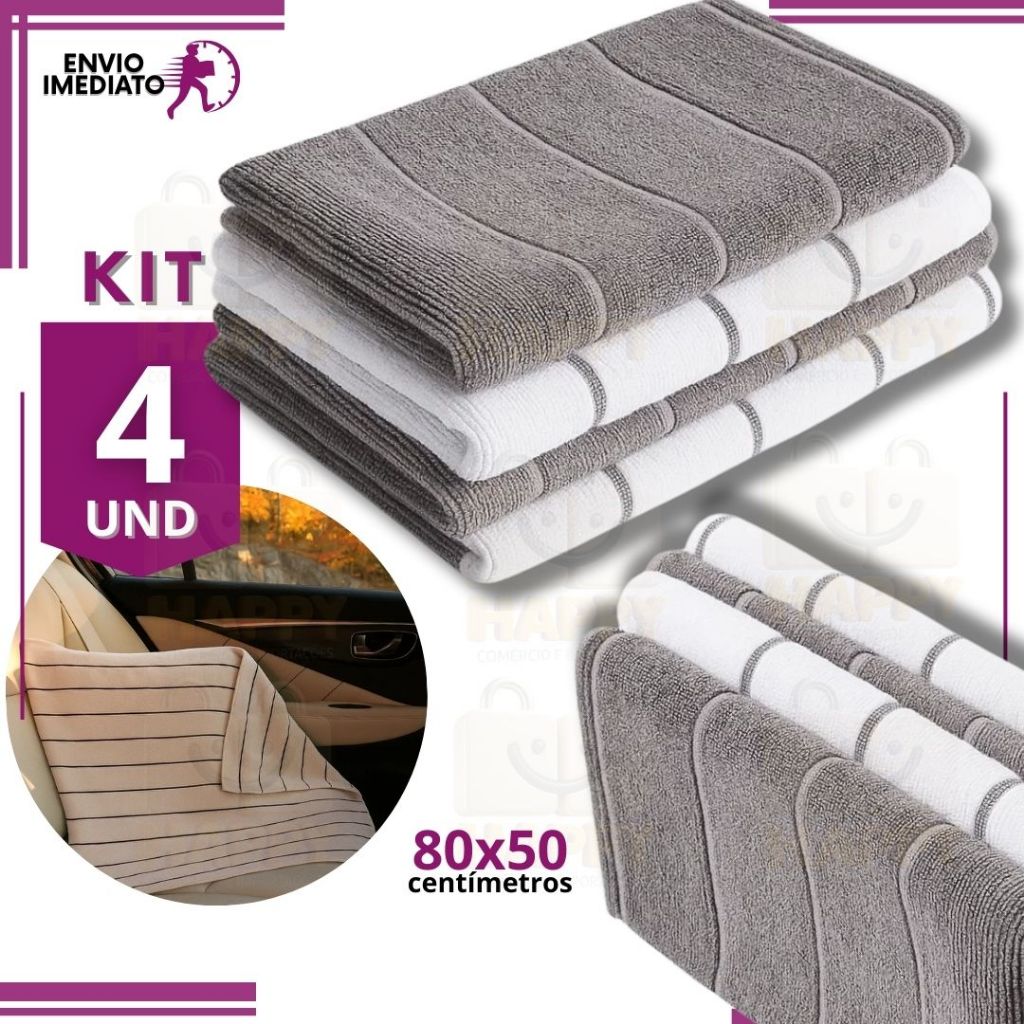 Kit 4 Toalha de Microfibra 80x50cm Multiuso Pano Grande Para Limpeza de Carro Móveis e Chão