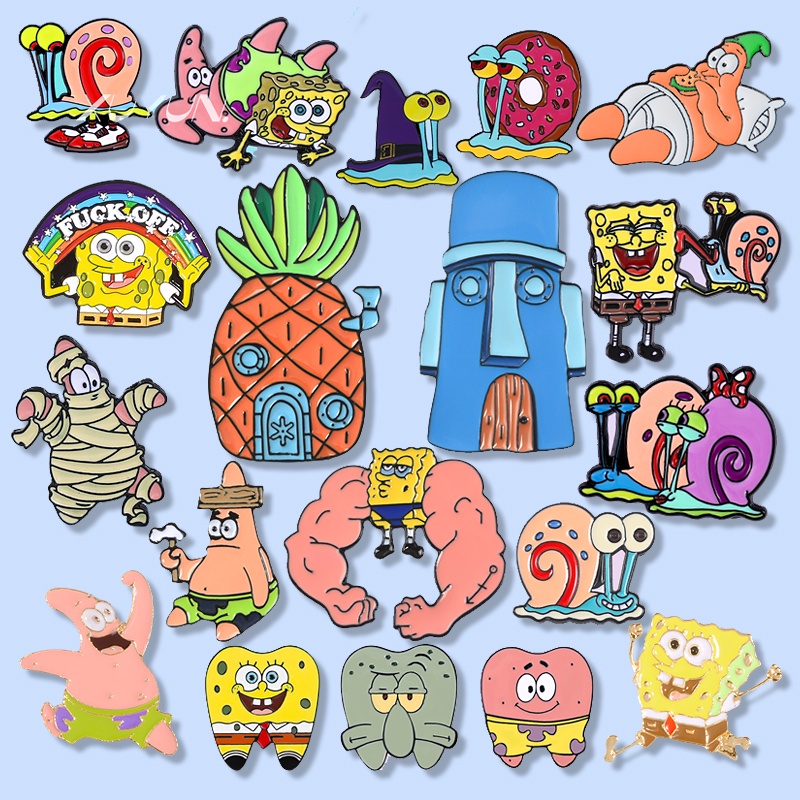 25 Estilos Broche De Lapela De Esmalte Em Torno De Desenhos Animados Personagens Anime SpongeBob SquarePants Star Metal Badge Clothing Accessories Gifts for Friends