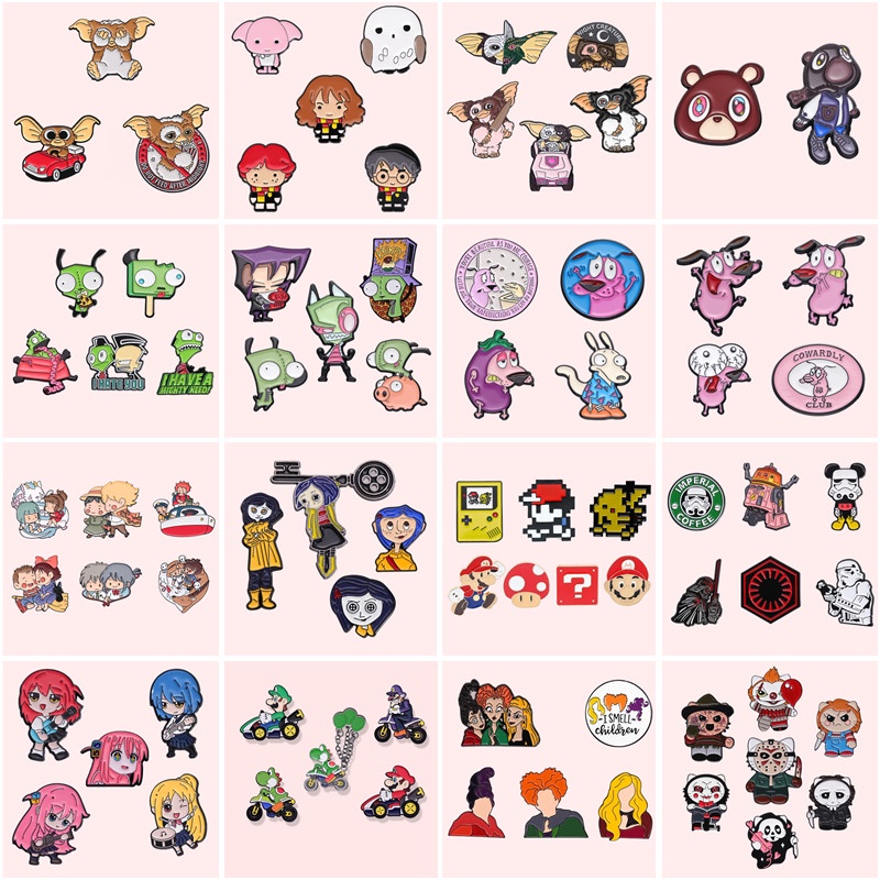 2-7Pcs/Set Anime Periférico De Esmalte De Longa Distância Cachorro Cowardly Dog Baby Yoda Broche De Alienígena Funny Three Sisters Backpack Badge