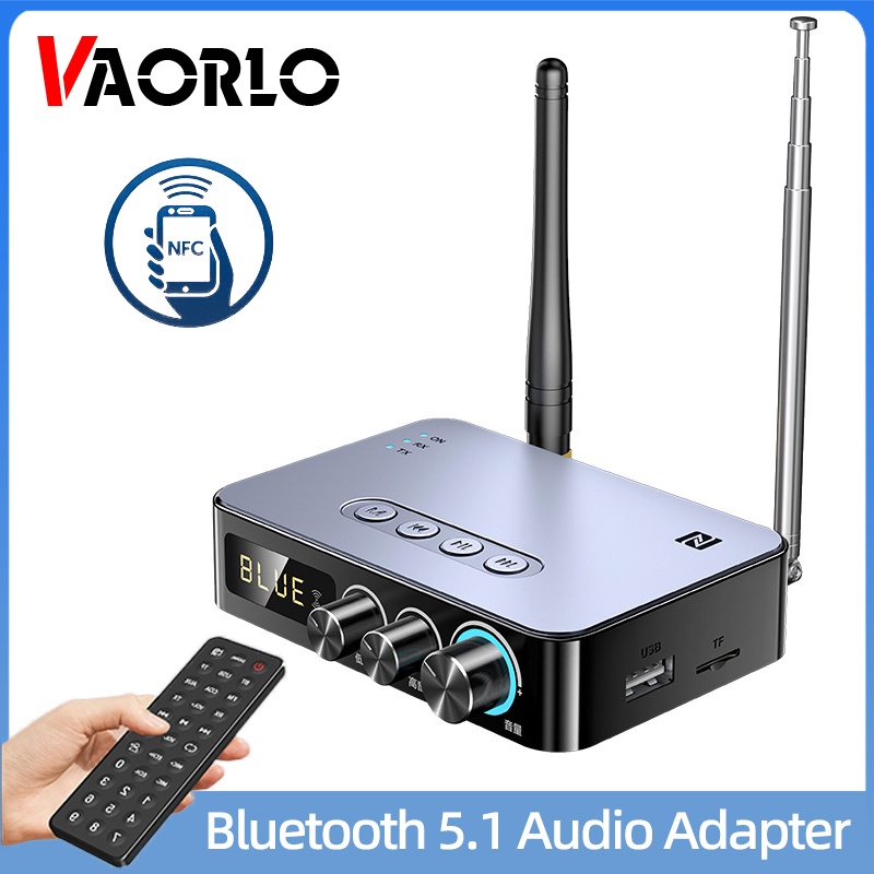 VAORLO NFC Bluetooth 5.1 Receptor De Áudio Transmissor AUX RCA Sem Fio De 3,5mm Adaptador De Música Estéreo Rádio FM U Disco/TF Leitor De Cartões Com Suporte Remoto IR Karaoke