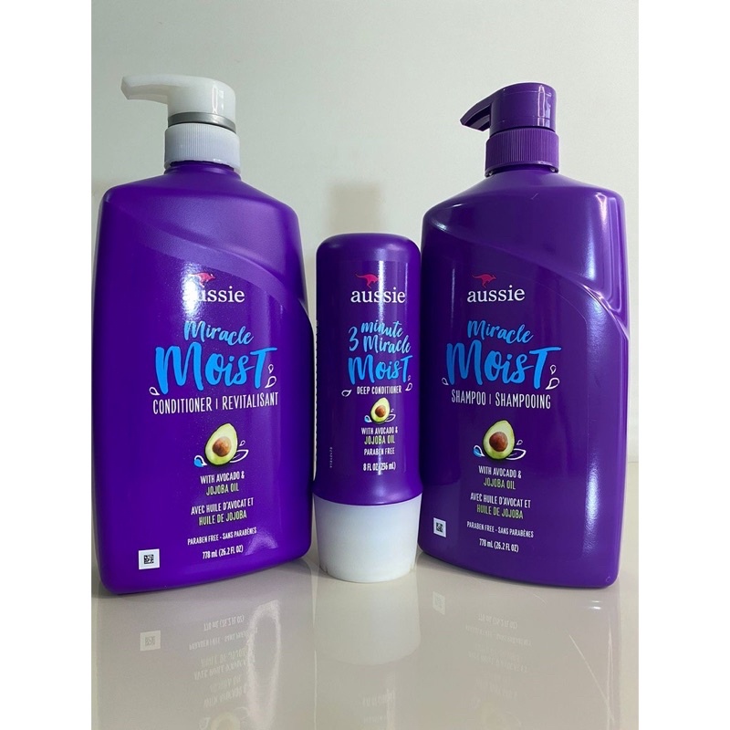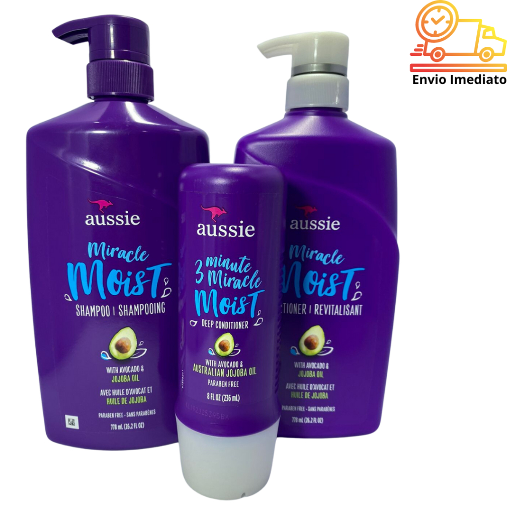Kit Aussie Moist Shampoo 360ml + Condicionador 360ml + Creme 3 Minutos Milagrosos 236ml