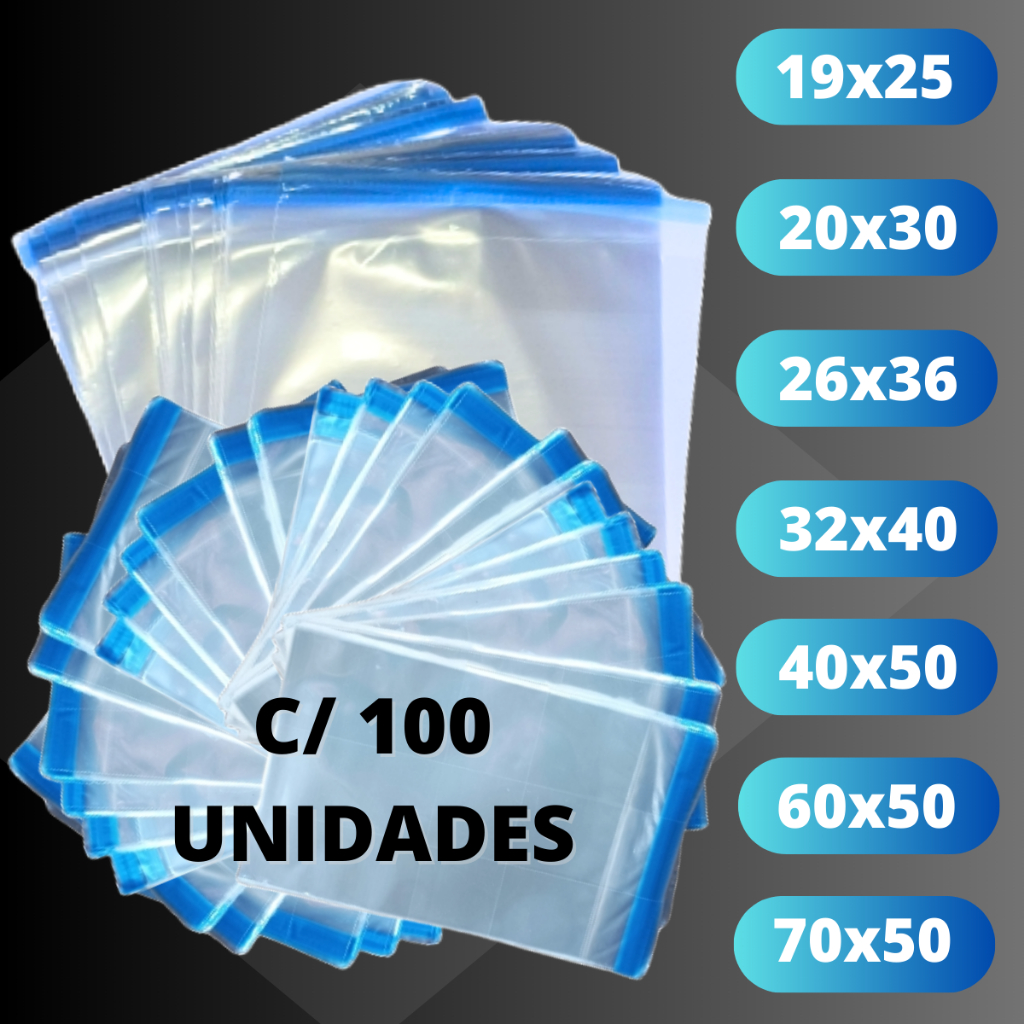 Kit 100/500 unidades saco plástico adesivado 4x4cm até 25x35cm auto adesivo - Embalagens