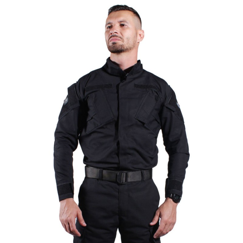 Camisa Gandola Tática Manga Curta Ripstop Preta Uniforme Militar Vigilante Segurança Airsoft Paintball