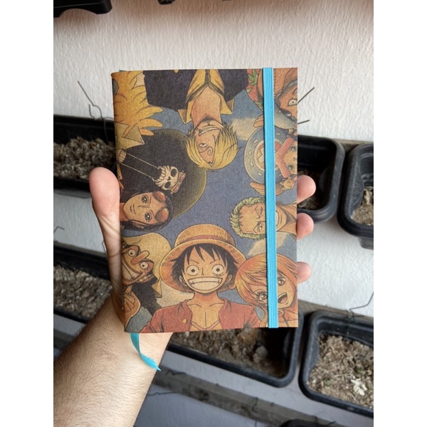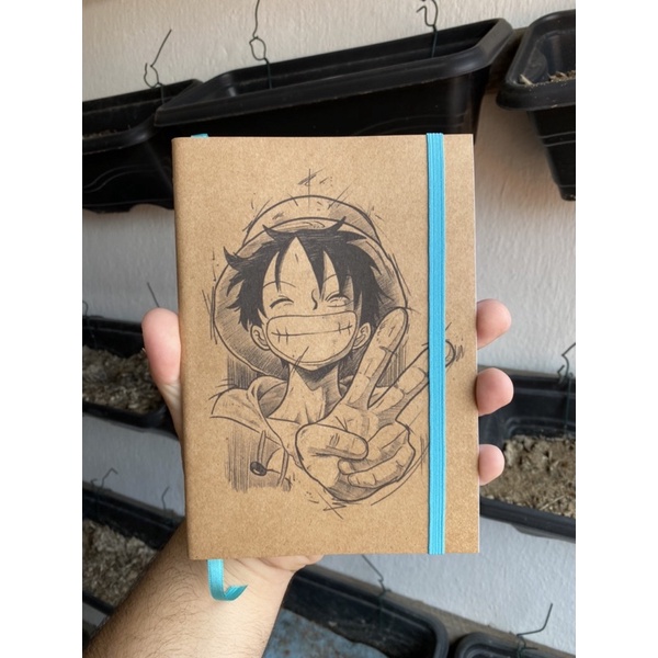 Sketchbook Caderno One Piece Luffy Zoro Nami Nico Shanks com Elástico e Marca Página Aquarela