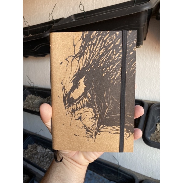 Sketchbook Caderno Desenho Venom Simbionte Eddie Brock com Elástico e Marca Página Aquarela