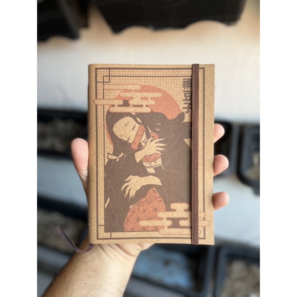 Sketchbook Caderno Desenho Demon Slayer Nezuko com Elástico e Marca Página Aquarela