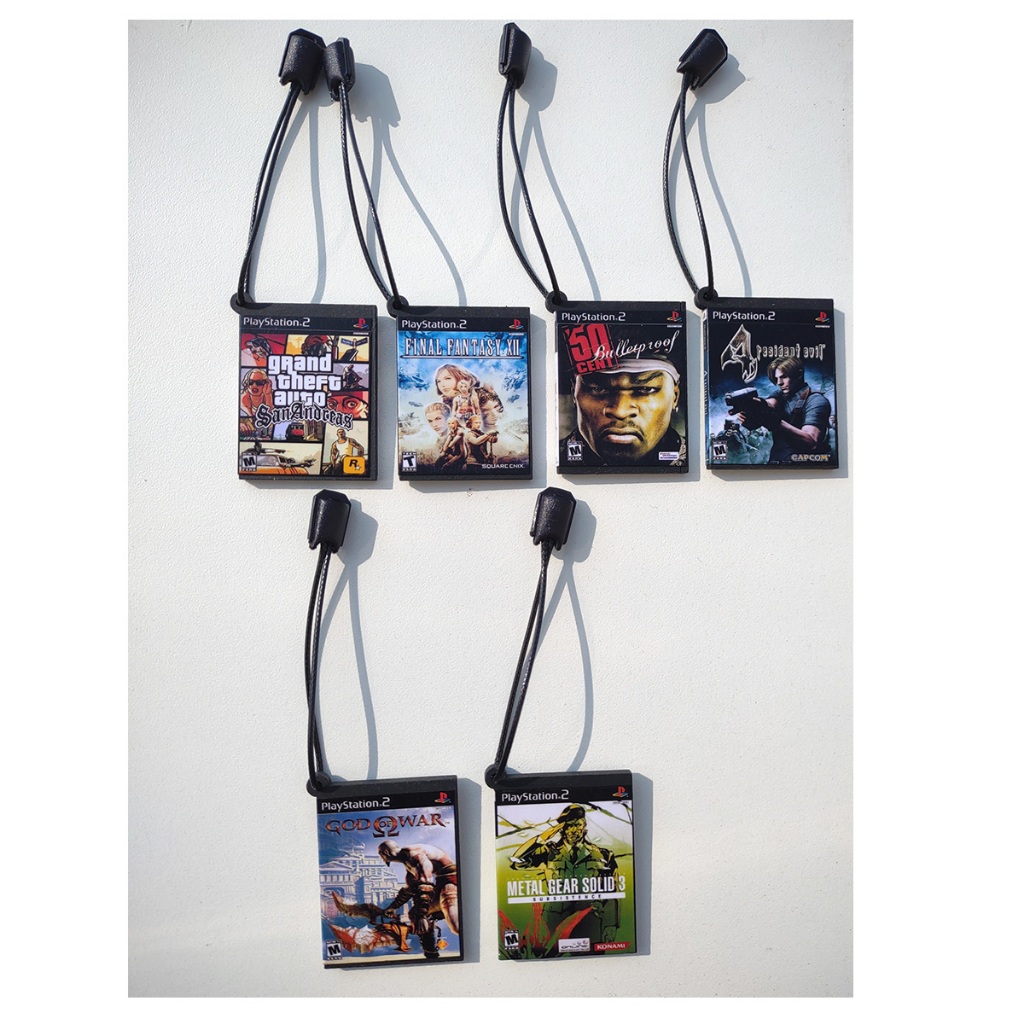 Kit com 6 Chaveiro Game Jogo Ps2 God of War Final Fantasy Gta Residente Evil Metal Gear 50 Cents Bullet Rpoof