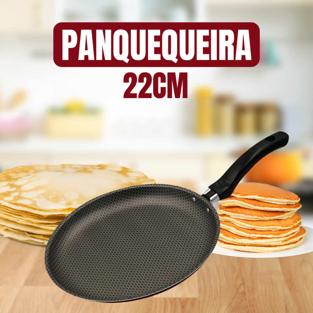 Panela Frigideira Antiaderente 22cm Redonda Panquequeira Tapioqueira Alumínio p/ Panqueca Tapioca Omelete Ovos Wrap