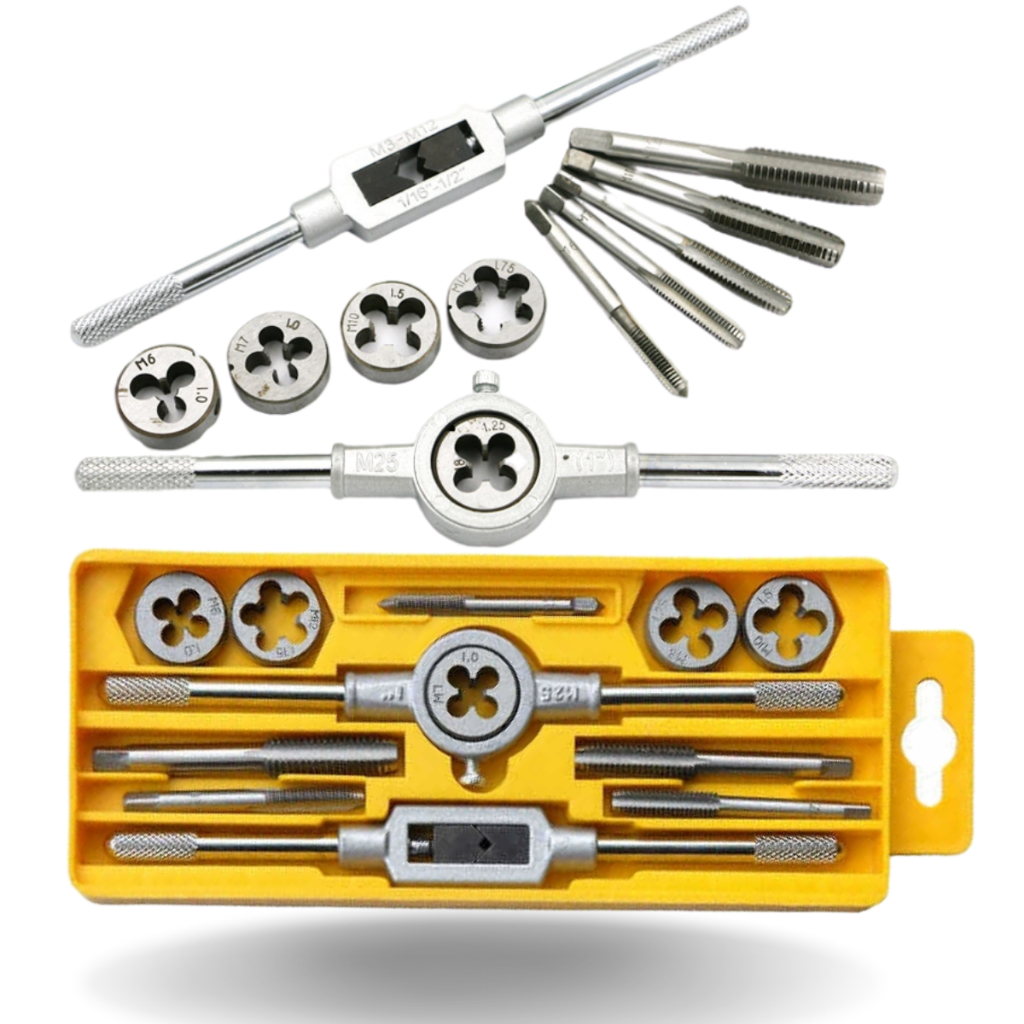 Jogo Kit Macho e Tarracha De Fazer Rosca Tarraxa Em MM Cossinete M10 Para Alumínio Plástico