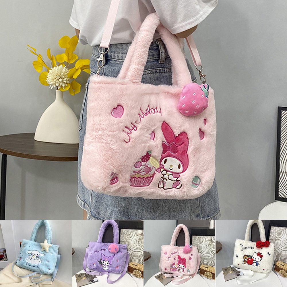 Sanro Saco De Pelúcia Kuromi Ombro Canela Hello Kitty Melody Plush Mão De Corpo Cruzado Casual Meninas De Pequeno
