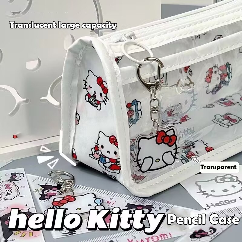 Novo Kawaii Sanrio Cartoon Hello Kitty Caixa De Lápis Gato Anime Transparente Grande Capacidade Saco De Papelaria Simples Para Meninas