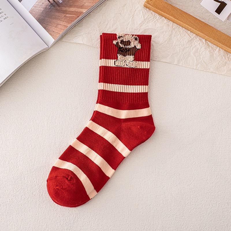 Korozo Autumn/Winter Plush Mid Cap Casal De Amor Meias Versáteis 2024 Ano Dragão E Primordial Big Red Socks