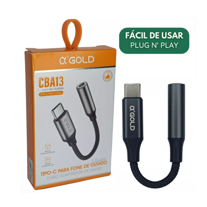 Adaptador DAC Cabo Tipo C (Usb-C) para P2 de Fone de Ouvido