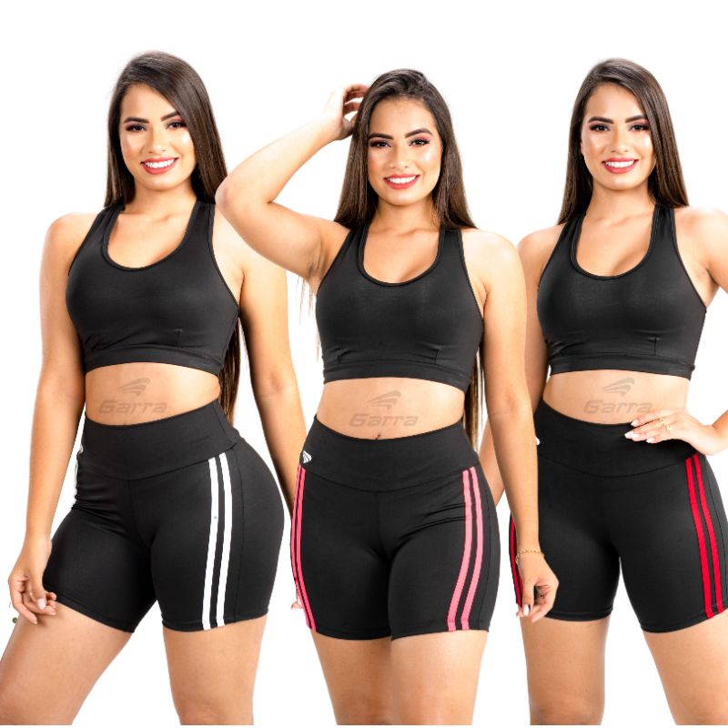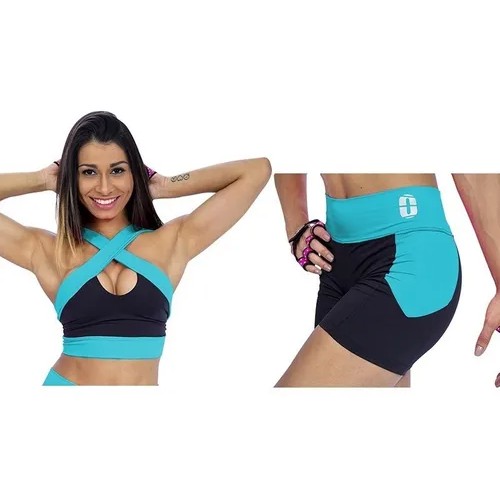 Kit Conjunto Academia Feminino Fitness Top Cruzado + Short Cós Alto