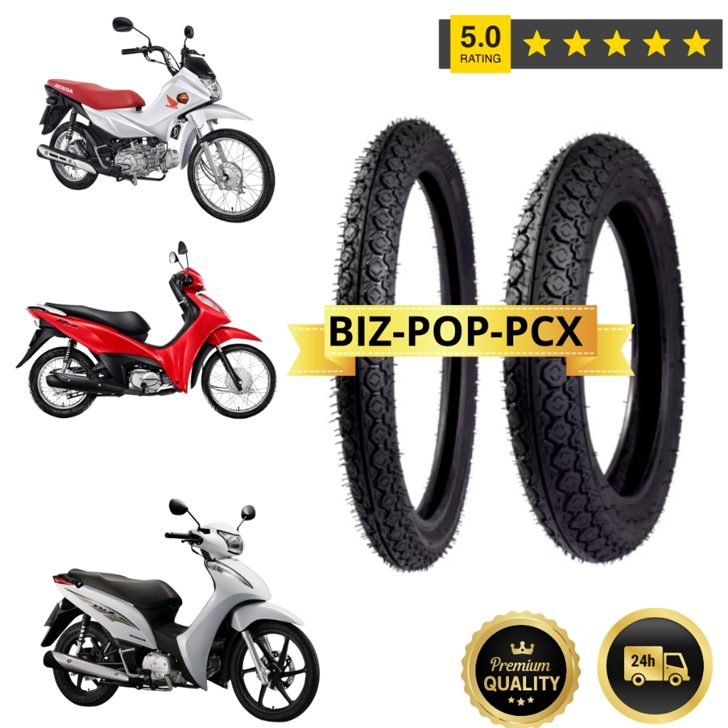 Par de Pneus para Biz 100 125 80/100-14 + 60/100-17 Pop 100 110 Crypton Honda