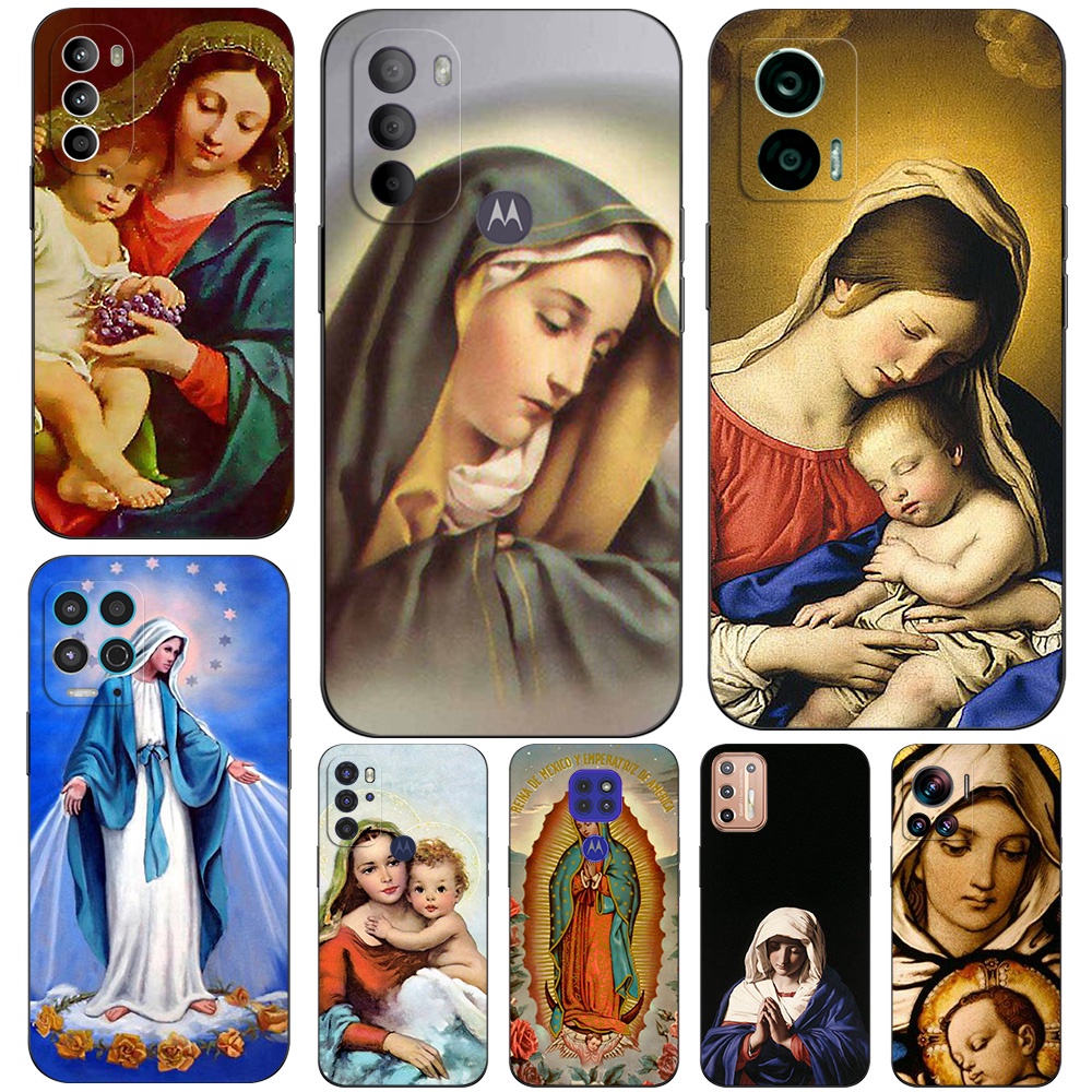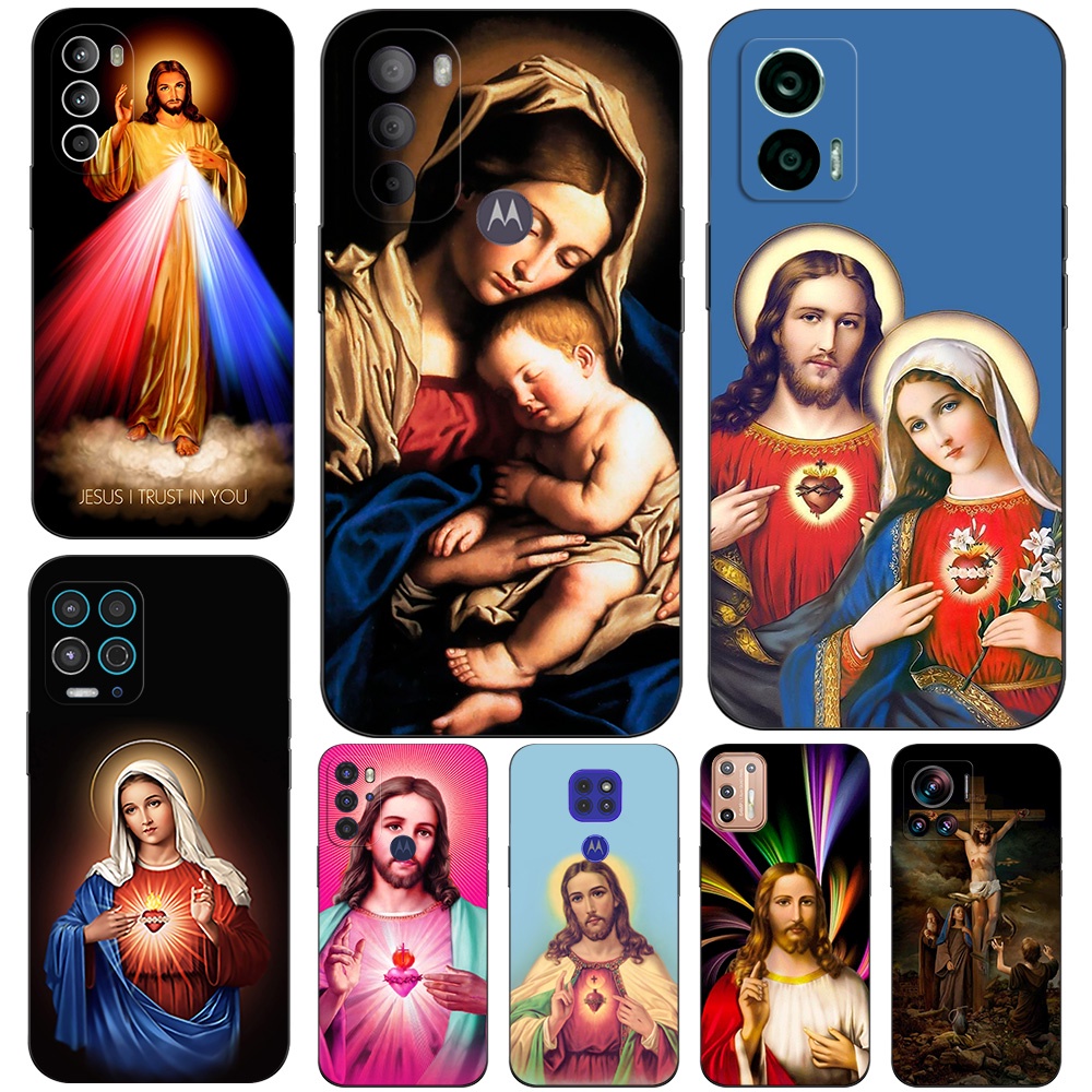 Estojo Para Motorola Moto Edge 40 neo 5G G14 G54 G84 Capa Traseira Do Telefone Silicone Macio Preto Tpu Natal Virgem Maria Christian