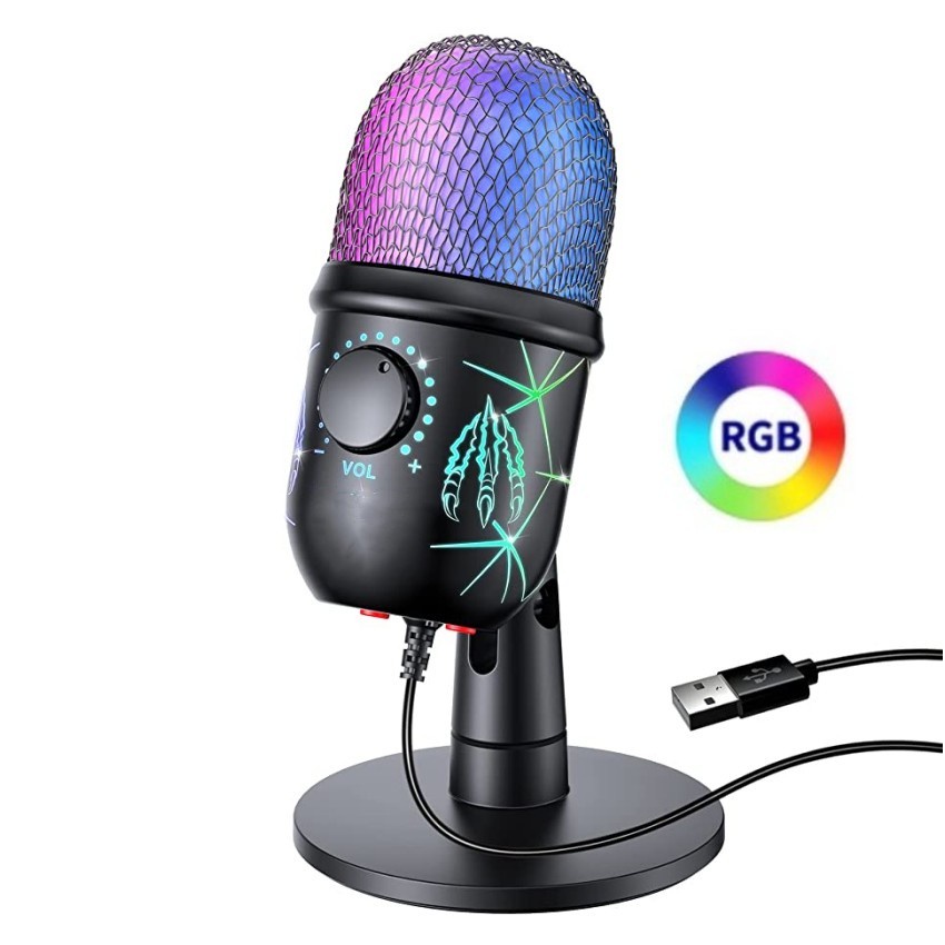 Microfone USB Para Jogos De PC Com Fio Streaming Podcasts , De Mesa Condensador De Computador RGB Vídeo YouTube