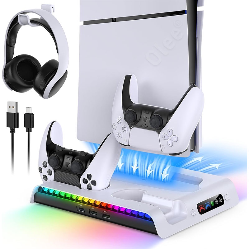 Suporte De Carregamento Para Novo PS5 Slim Com Ventilador De Resfriamento , Estação DualSense/Edge Controller Luz RGB , Cooler Playstation 5 Disc & Digital Editi