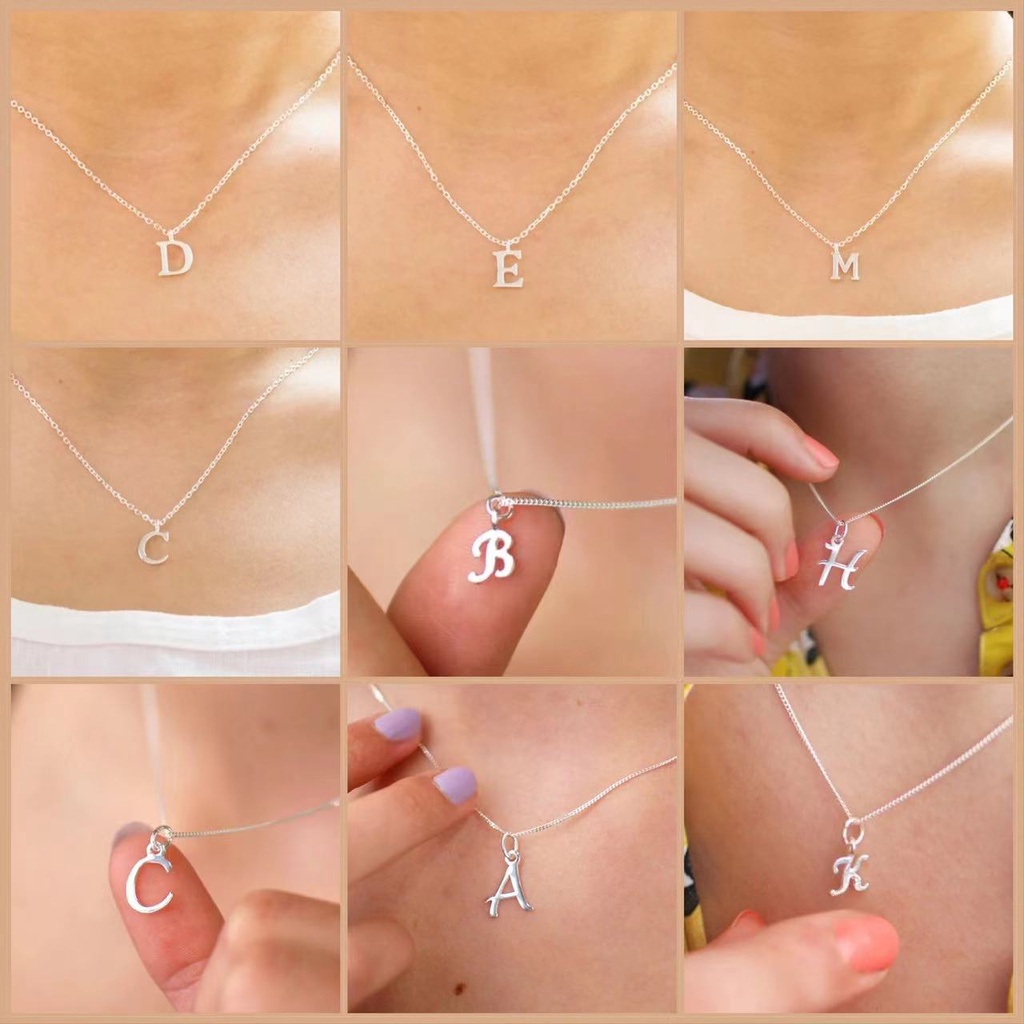 Colar pingente Letra Inicial nome prata folheado prata 925