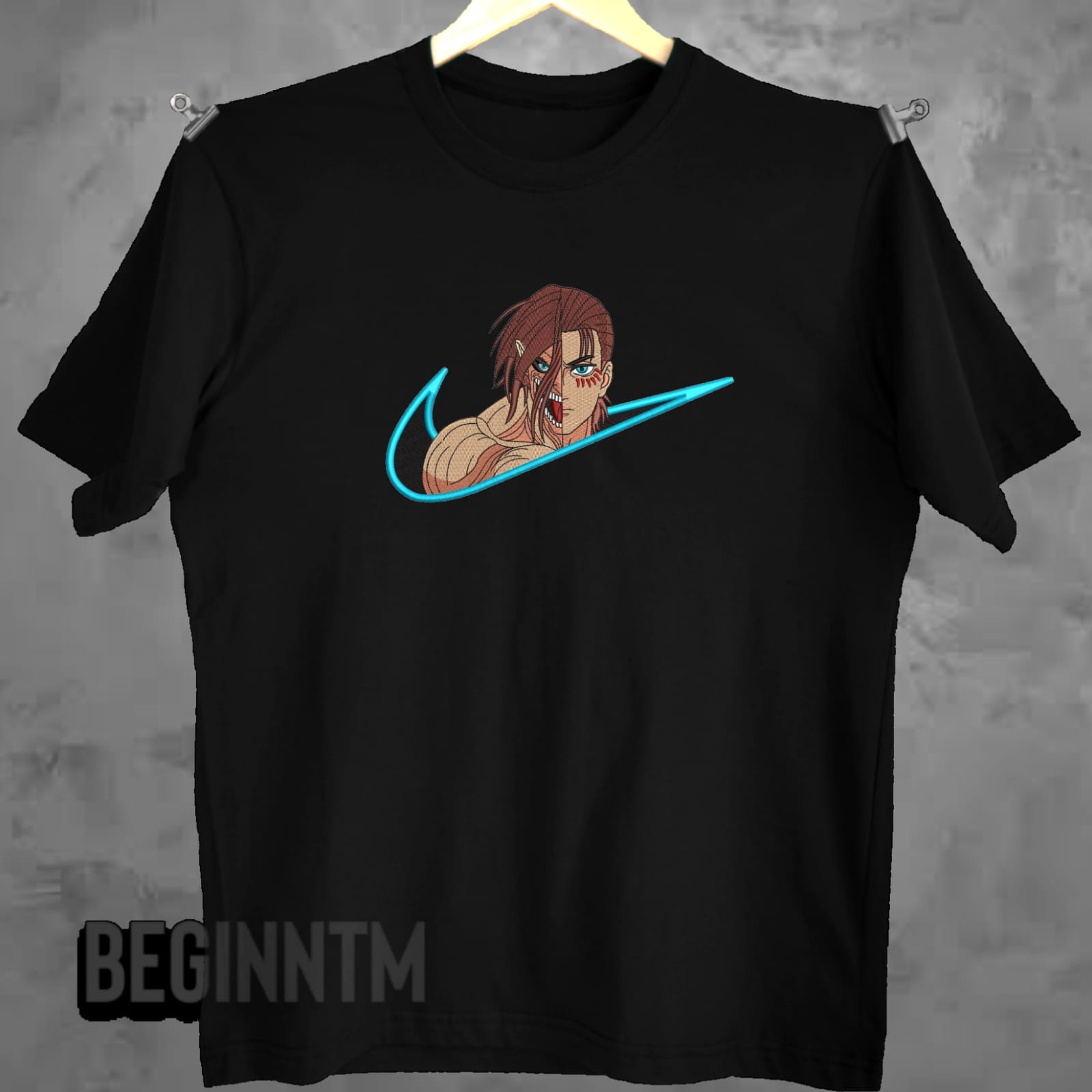 Camiseta Eren titan Bordado anime Attack on titan camisa 100% algodao penteado Shingeki no kyojin