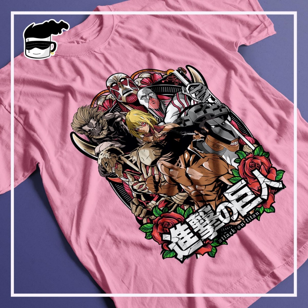 Camiseta Attack on Titan Titan Unissex Camisa Anime Shingeki no Kyojin Rosa