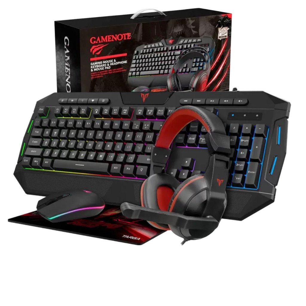 Kit Gamer Teclado Semi-mecânico RGB, Mouse 3200 DPI 7 Botões RGB, MousePad, Headset Fone Gamer