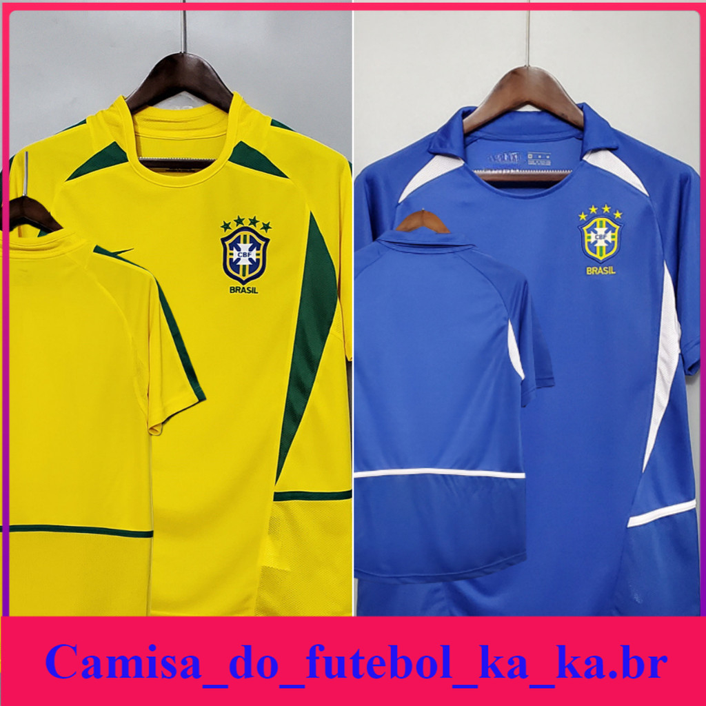 Camisa de Futebol Retro Brasileira 2002 B-L Camisa Azul Longe Masculina
