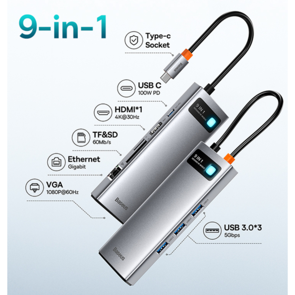 Hub Dock Station Baseus 9 Em 1 Usb C Hdmi 4K VGA RJ45 TF SD